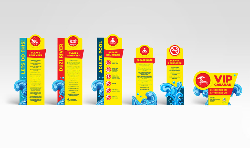 The park had developed over time and signage had been designed and installed by a variety of service providers without clear, brand guidelines. As a result, brand integrity had been lost. Following a situational analysis to get a full understanding of the nature and scope of the problem, we researched best practice internationally, before designing signage for each of the eight park experiences that aligned with the overall uShaka Marine World brand.